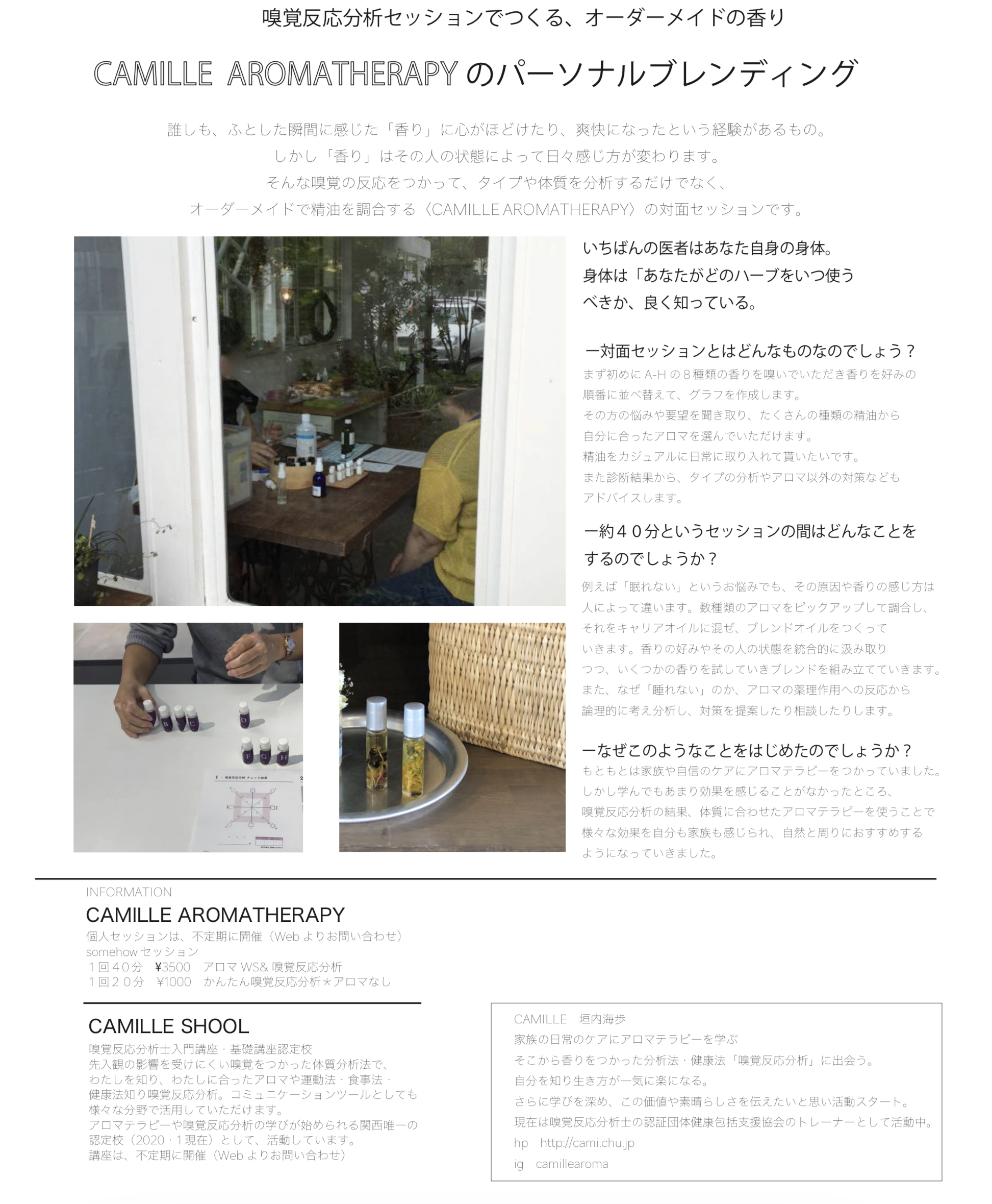 011D88CE-4D54-410E-9F27-1FC067D4FE75 Tweet Share camille 海歩(Miho):嗅覚反応分析士トレーナー。AEAJアロマインストラクター。主婦の立場から、薬効を持つアロマで家族の健康サポートを期待し、40歳で学び始める... プロフィール Tweet Share ピックアップ記事 aroma_check 身体と繋がるアロマ aroma_check SCHOOL 2025スケジュール SCHOOL SCHOOL スクール#02【自分を知る】嗅覚反応分析士基礎講座 SCHOOL 関連記事一覧 SCHOOL 2025スケジュール aroma_check 身体と繋がるアロマ SCHOOL スクール#02【自分を知る】嗅覚反応分析士基礎講座 SCHOOL アロマを学ぶなら嗅覚反応分析士入門講座がおススメな理由 event 加西市ねっぴ〜Pay加盟店です LOG 香川県高松市にてアドバイザー基礎講座開催します LOG わたしがアロマに行きついたワケ LOG 幸せを感じるには